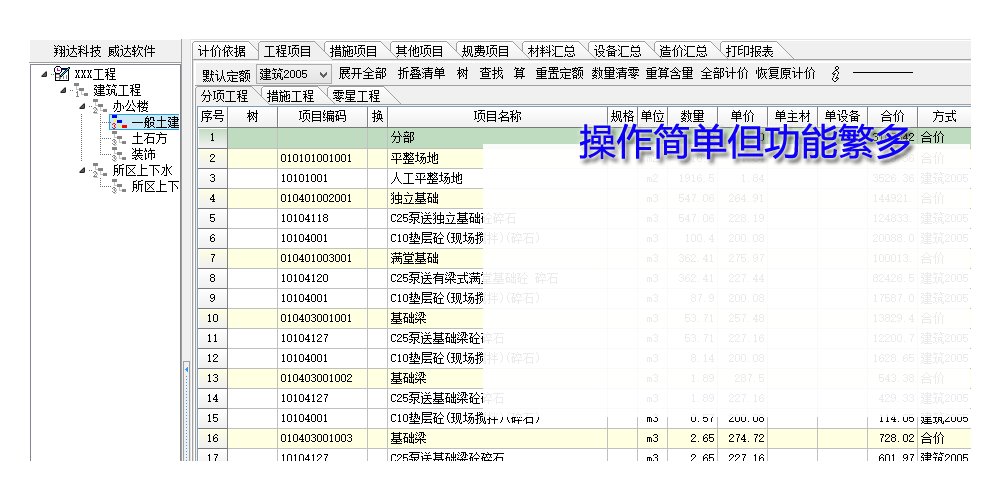 如果使用智能化部分,只需输入材料明细,定额自动套用,工程量自动统计.